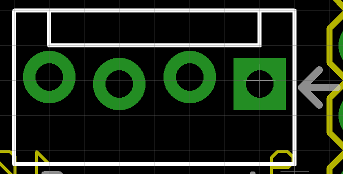 To do this, you’ll need to solder each lead of the LED to the leads of the Molex. Be sure to slip on the heatshrink before you solder. The only pin on the LED you really need to get correct is GND; the Molex is polarized, but you can also change the pin assignments for the different colors in code (but not ground). Ground is the pin marked with an arrow on the top of the board, like this: